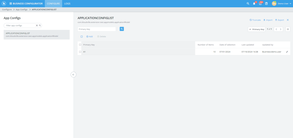 Added support for managing app configurations in Business Configurator
