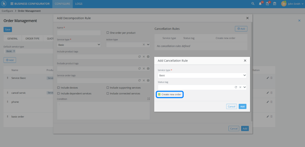 Added the “create new order” checkbox to cancellation rules