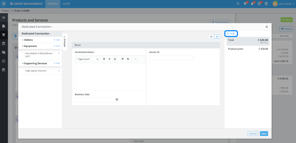 - Added the ability to hide interactions for service orders