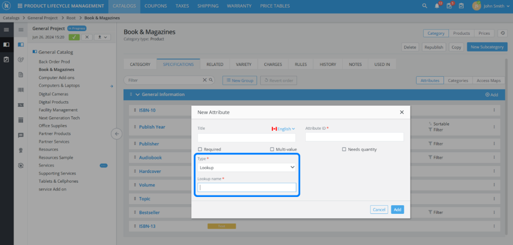 Added the ability to create a new “Lookup” attribute type in PLM category specifications configuration