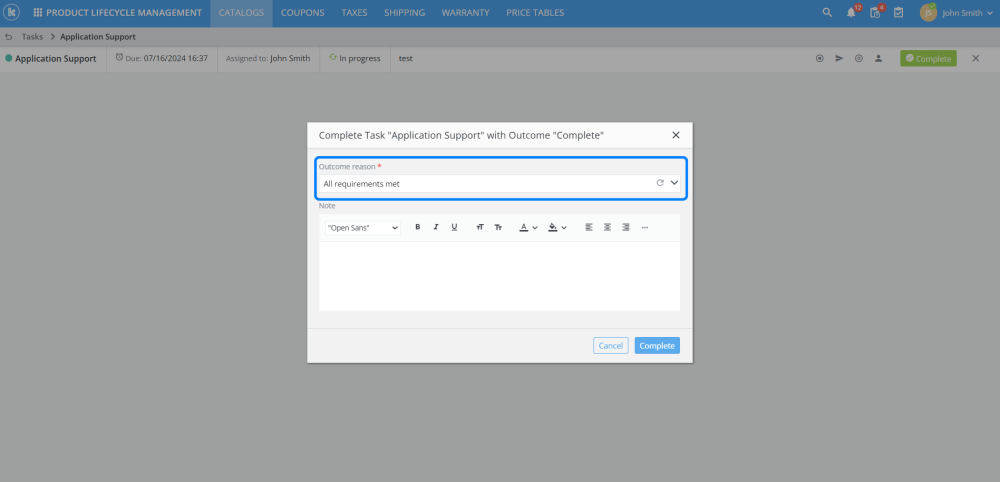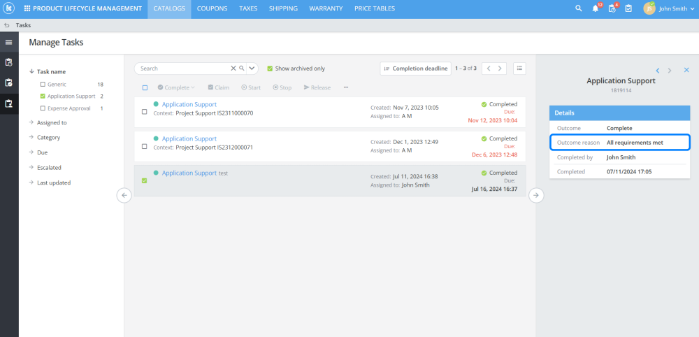 Users can now select a reason explaining why an outcome was reached for a task. The reason is shown everywhere the task outcome is shown.