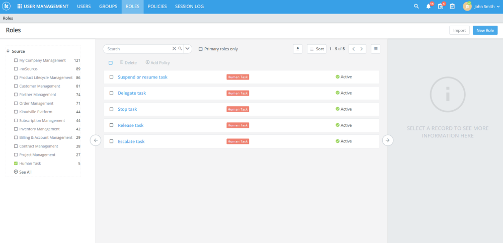 Kloudville has added new roles which can be assigned to users to enable or disable their access to certain human task APIs. These APIs include suspend or resume, delegate, stop, release and escalate.