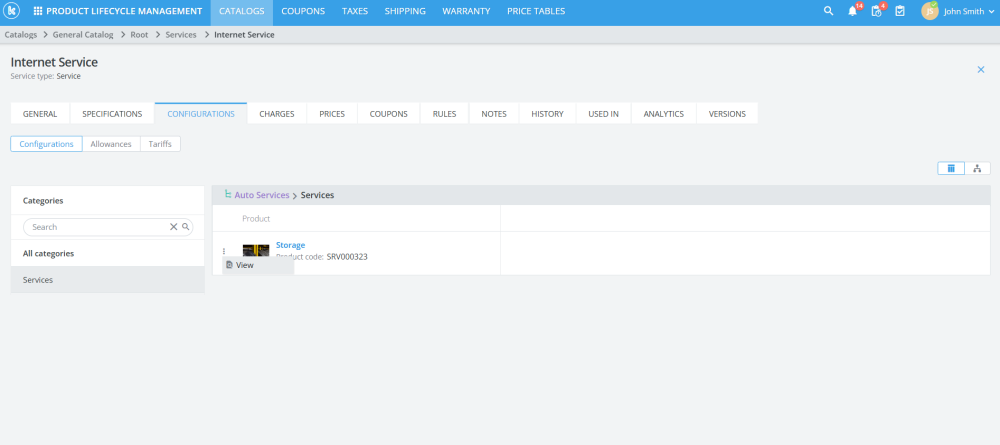 Previously, resource services were only visible in the configuration popup for a product.