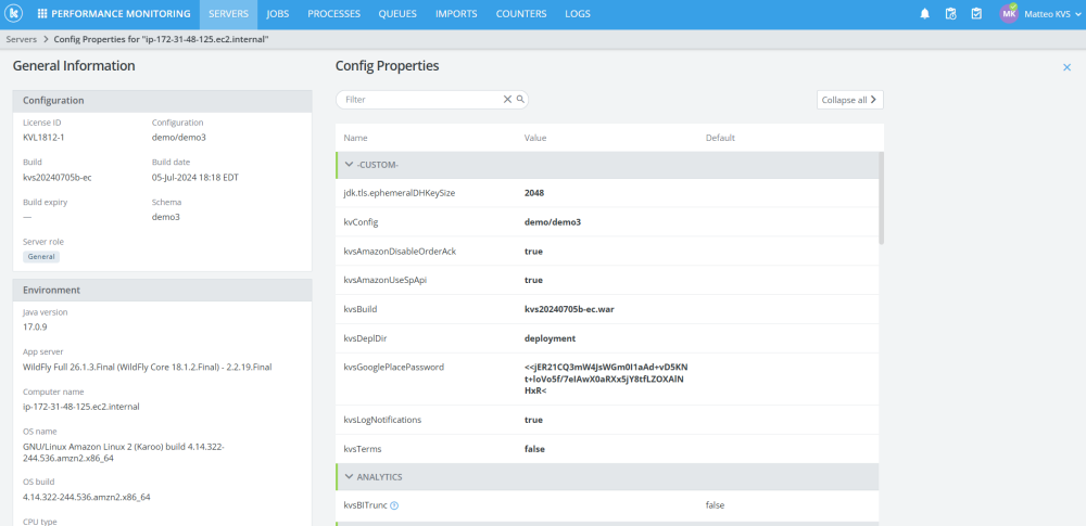 Added “View Configuration properties” option for servers