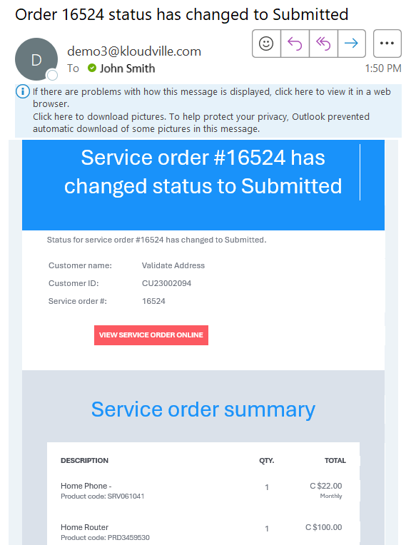 - Enhanced service orders to send email notifications to users upon status changes