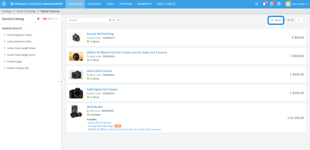 - Enhanced browsing in shopping catalog to sort products by price