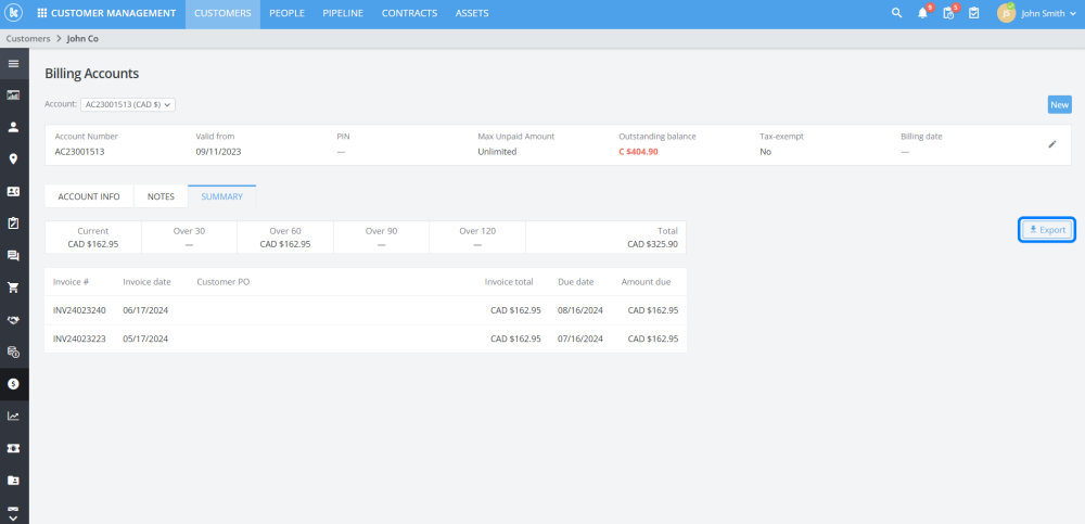 Added a summary tab which will show a table of the customer’s invoices and outstanding payments. This summary can also be exported into a PDF.