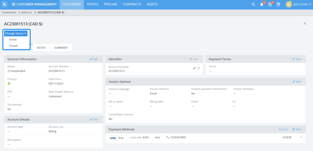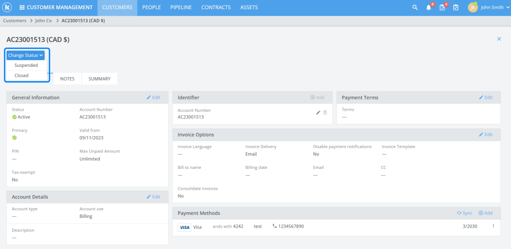 Enhanced customer and partner billing accounts by enabling users to suspend, close or reactivate accounts.