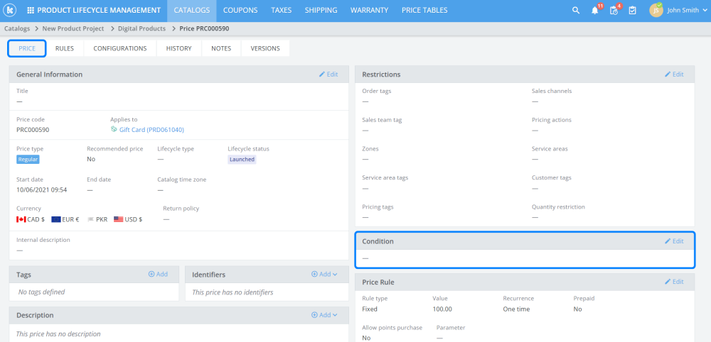 - Enhanced price rules page to show “conditions” as its own panel