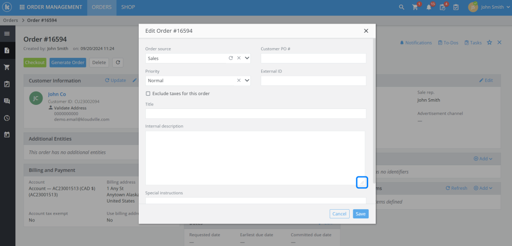Within order management, product resources can now be edited and updated similarly to products and services.
