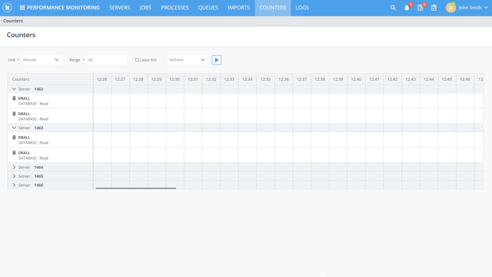 The counters page now groups the counters by server.