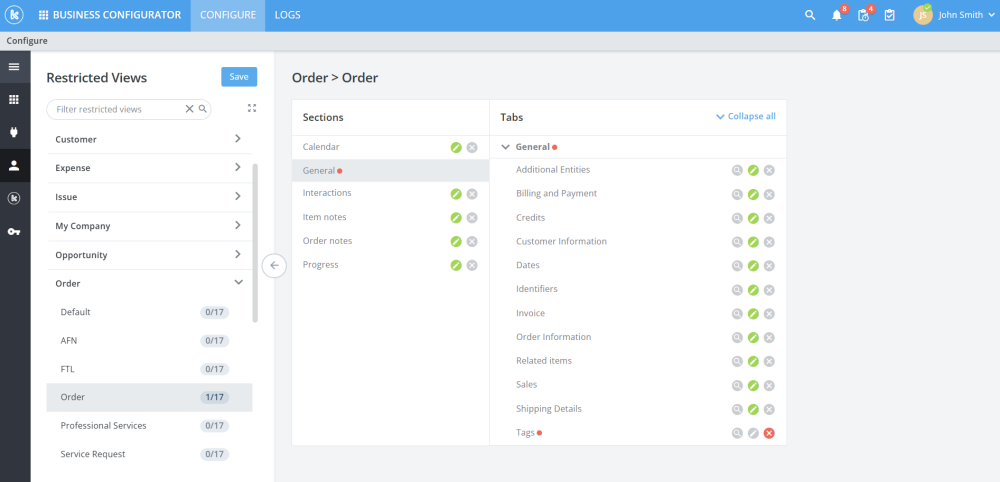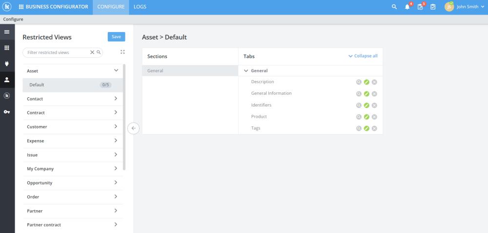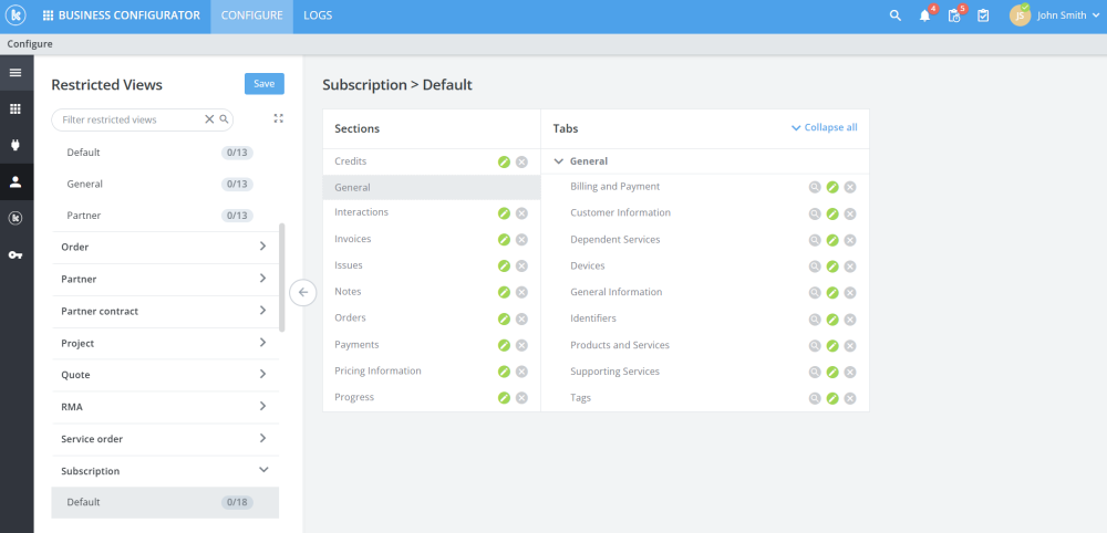 - Enabled restricted view configuration panels on subscriptions assets orders and contracts
