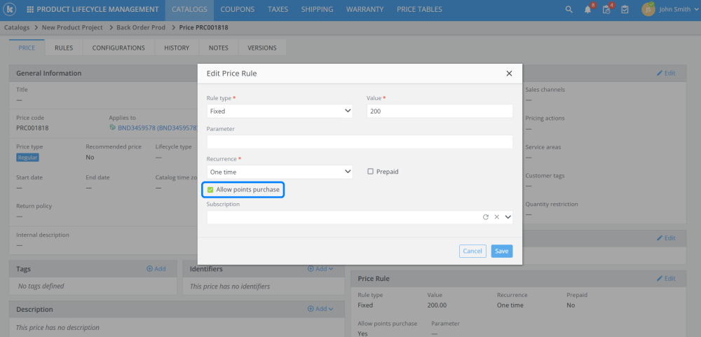 Added “Allow points purchase” flag to price rules