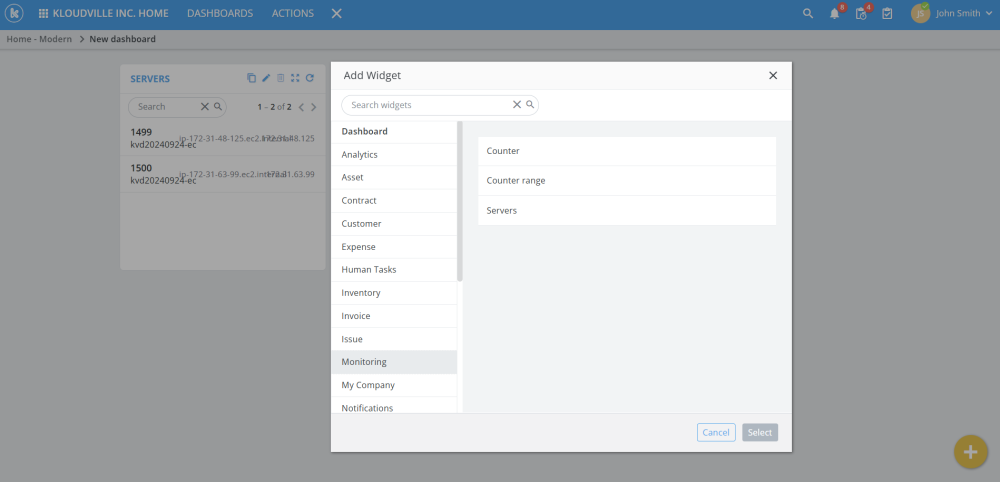 Added APM widgets: Counter, Counter range and Servers