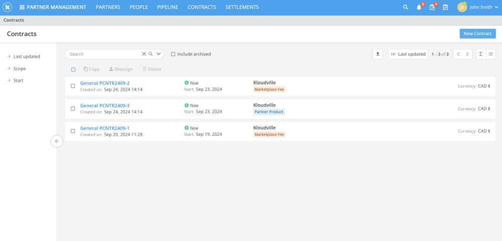 - Added the ability to change customers and partners during contract copying