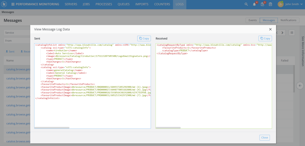 When viewing the logs of messages sent to and from the system, users can now quickly display the data sent and received, rather than having to download the data. Supported data formats are XML and JSON.