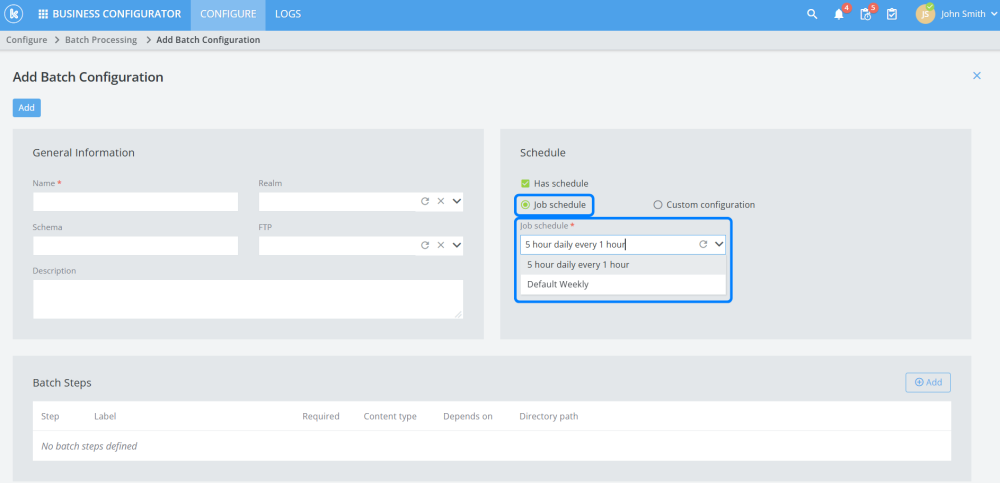 In batch processing, users will now be able to use one of their predefined job schedules by selecting them from the dropdown list.