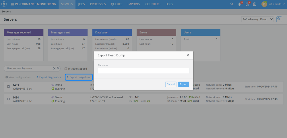 Added the ability to export a heap dump as part of the server diagnostics available for download in the APM application.