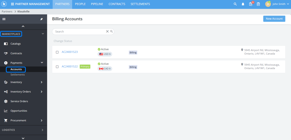 Added marketplace accounts feature to Partner profiles