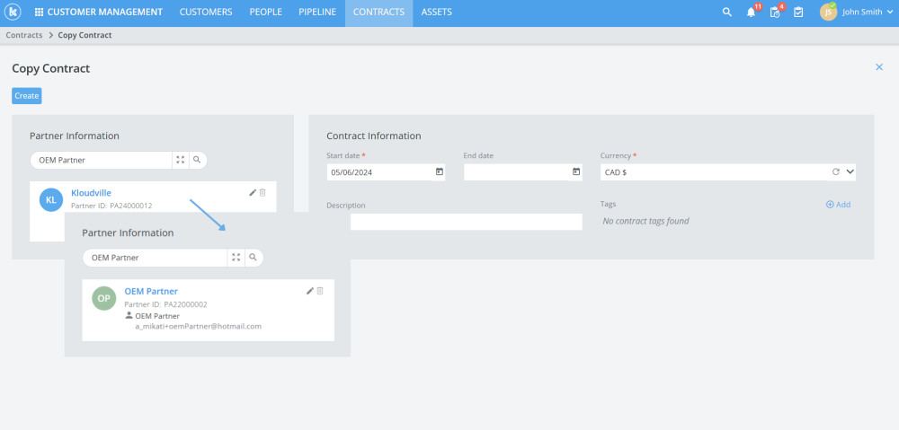 Added the ability to change customers and partners during contract copying