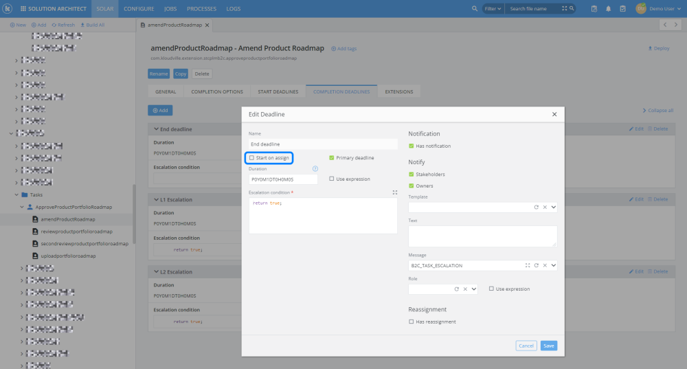 The “primary deadline” will take priority over any other completion options or escalations.