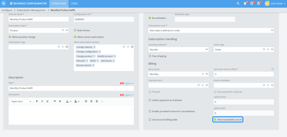 Added the ability to backdate subscription cancellations