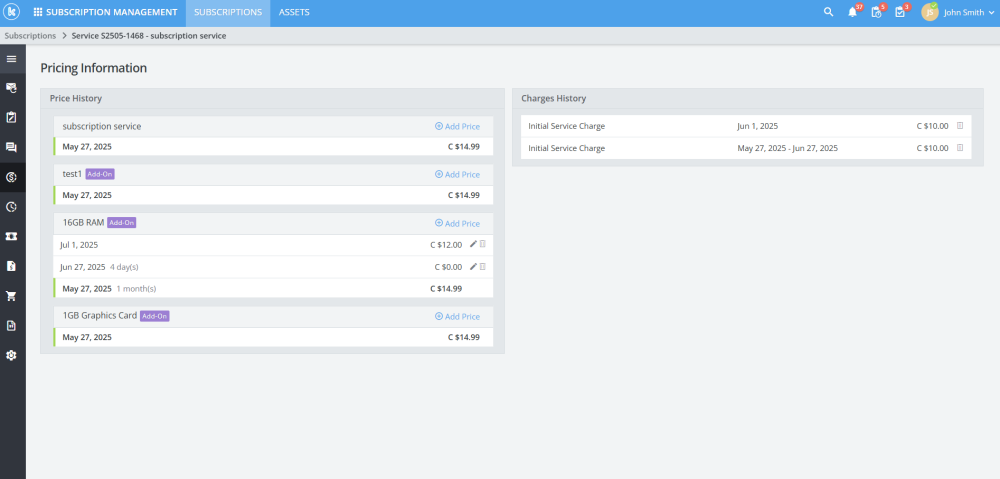 Within a subscription, users can now view and edit addon prices in the subscription’s price history.