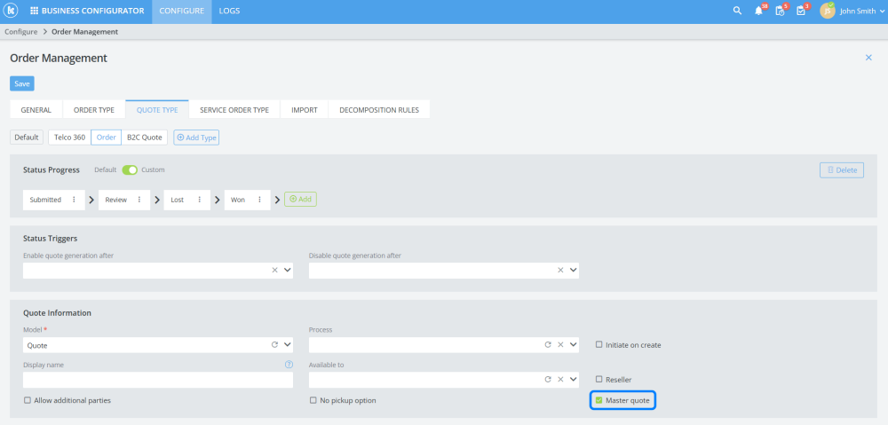 Users can now create multiple quotes from a master quote. This allows users to create multiple versions of a complex quote.