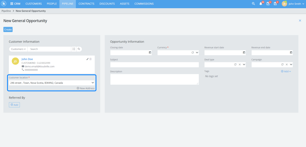 Users are now required to select a location when creating opportunities.