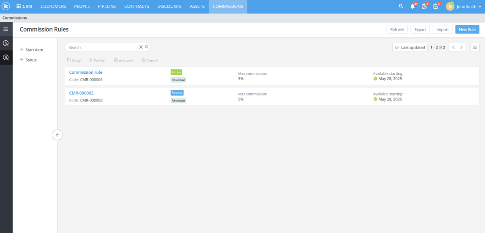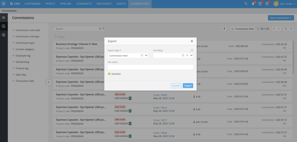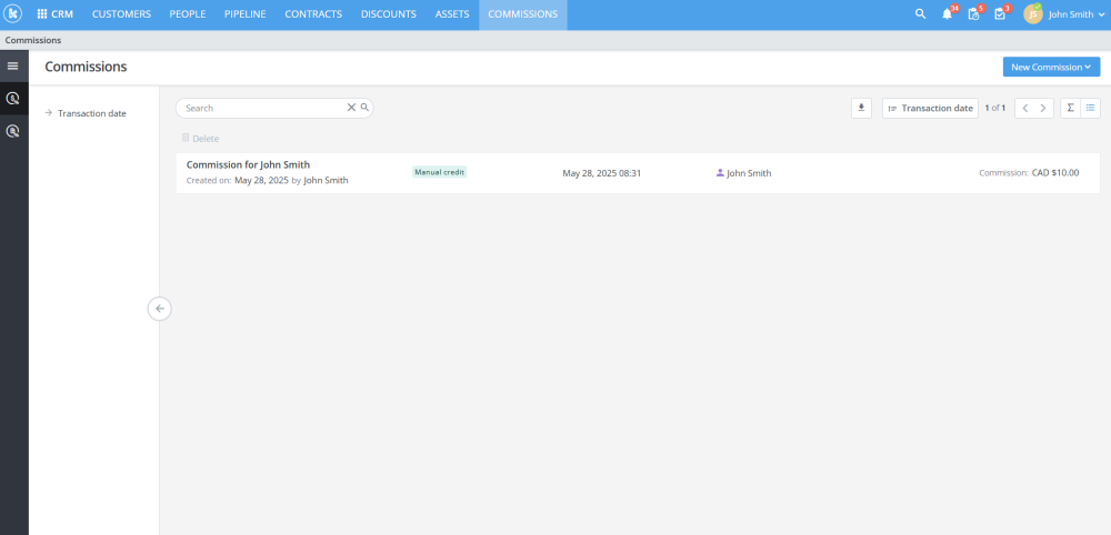 Added new Commissions functionality in CRM module