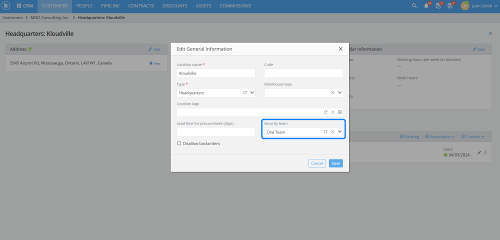 Added the ability to set security teams on customer and partner locations