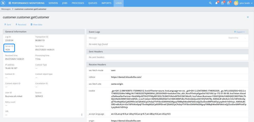 Added server ID to message logs