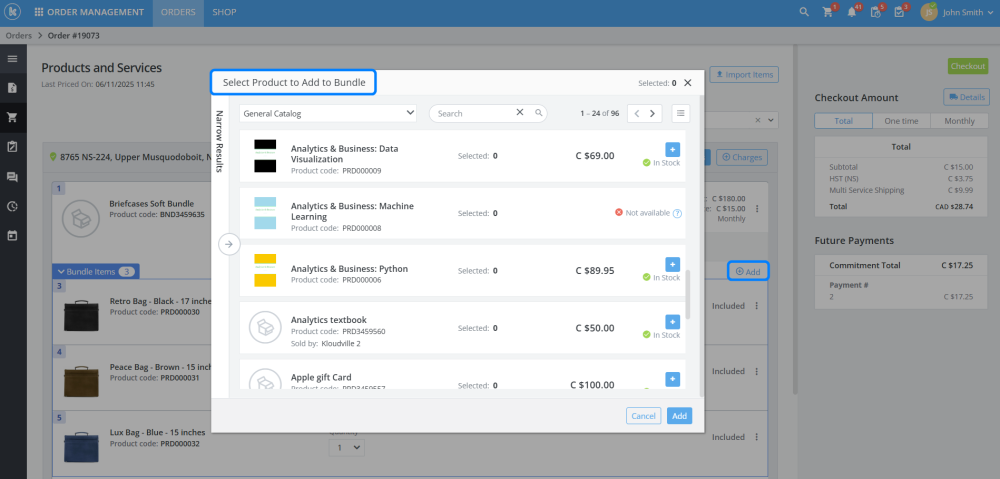 The action of adding a product to a soft bundle will now be done inside a pop-up.