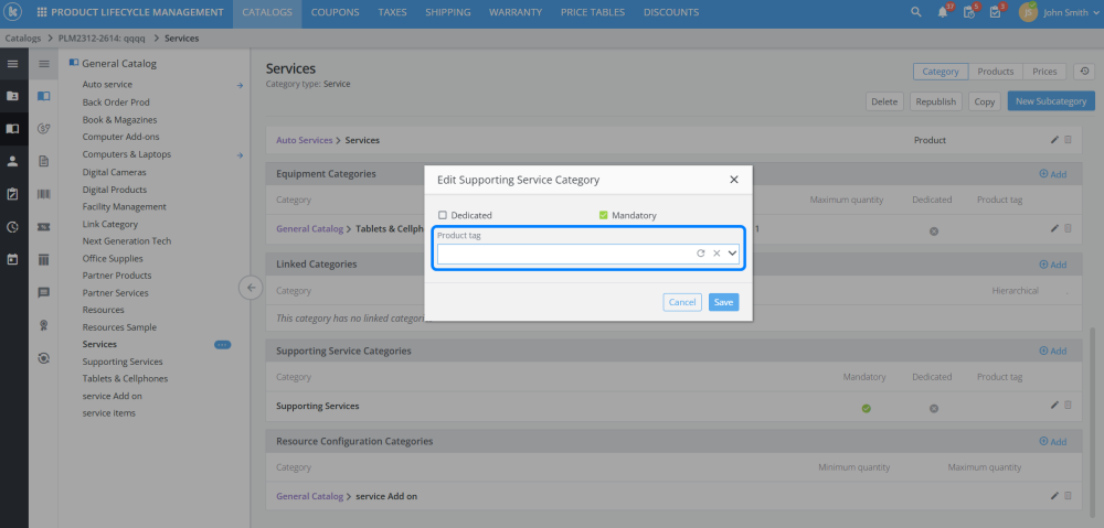 Added the ability to restrict Supporting Service categories by product tags